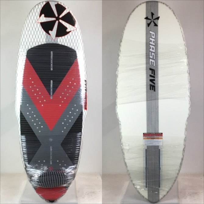 The Gizmo V2 is a modified pin-tail version of our original foil board. It is ultra light, super stiff and delivers the right amount of float. We designed the Gizmo V2 with an extra wide rounded nose to help recover during a foil breach and pulled in the bottom half for superior handling. The Gizmo V2 separates itself by the pin-tail which gives the board increased sensitivity with the foil. It is built in smaller sizes to further this concept of being a high performance machine recommended for the well-versed foil riders. The Gizmo V2 comes equipped with foot straps for huge airs and strapped in foil maneuvers. This tough foil board is glassed with our high end FLEXtec V2™ system for unmatched strength and durability. The Phase Five Gizmo V2 utilizes an adjustable 10.75” long reinforced track mount system for the foil.
