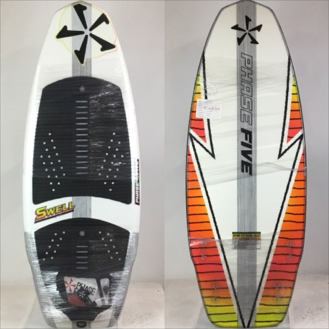 The Phase Five Swell Wakesurfer designed by Stacia Bank offers a lean outline, pulled in nose and super poppy tail. The parallel rails increase down the line speed while the wide tail helps spin 360’s and creates tons of boost off the wave. The pulled in nose lets you charge the lip with speed and power. The shape of the Swell features a concave deck with less volume in the center of the board for superior handling. It is known to be one of the easiest to ride performance surf style board on the market.The Swell is glassed with our Flightlite V2™ Pro Select layup for ultimate lightweight performance and is equipped with a quad FCS Fusion fin setup.