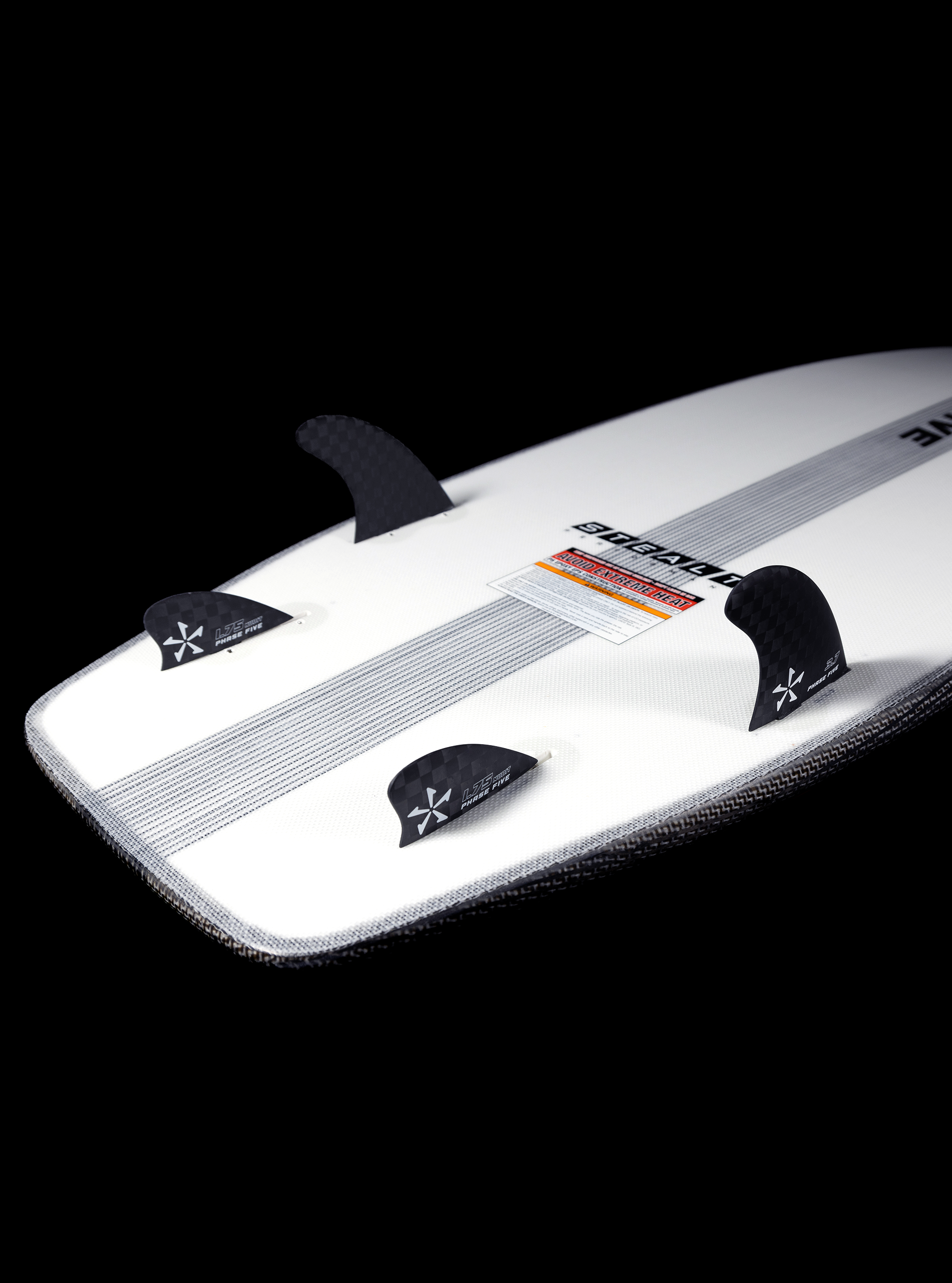 The Stealth construction is our newest surf style build that introduces basalt into our lineup. This layup schedule includes a full basalt/innegra top weave reinforced with a carbon stringer and tail patches. The bottom is a full Innegra sheet reinforced with a carbon stringer. It is the strongest layup schedule that we have to date in the lineup and it doesn’t sacrifice any performance. The Stealth build provides great pop and a lively feel under the rider’s feet. This build is only offered on our top “Performance” shapes.