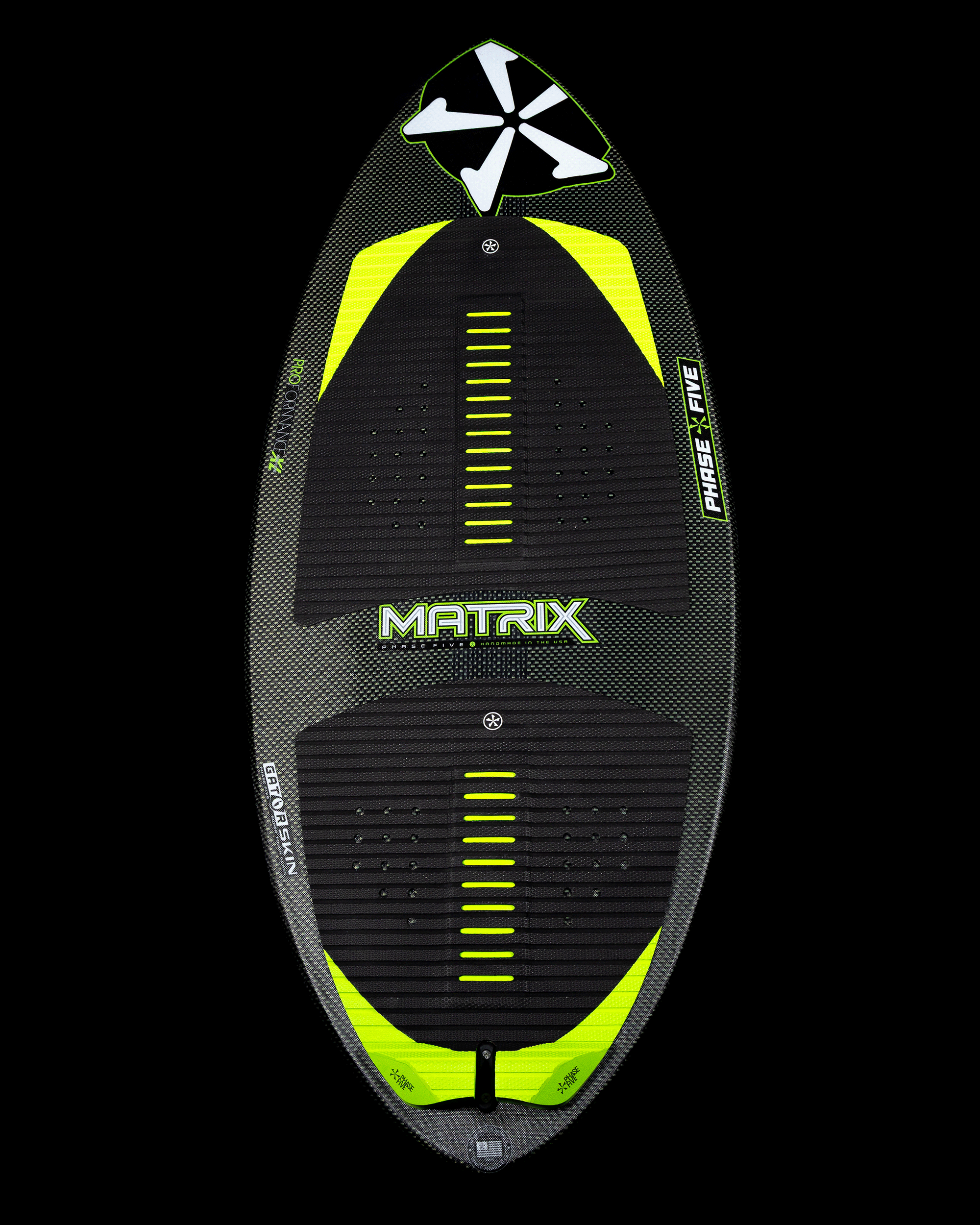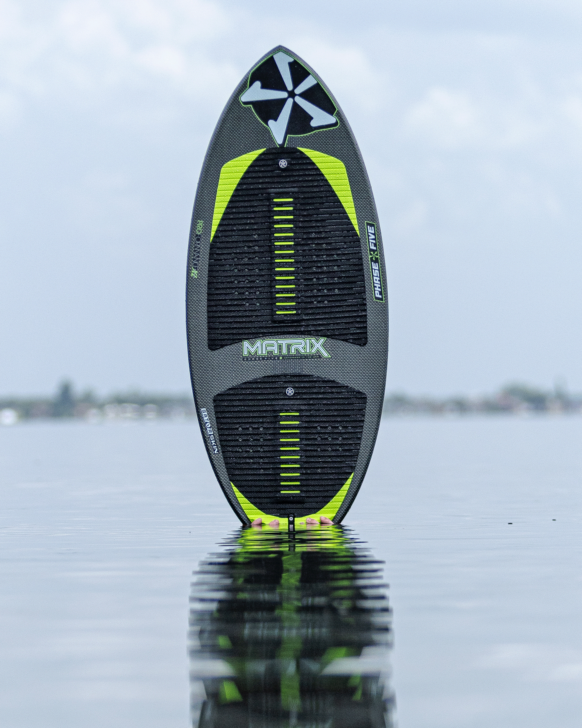 The Phase Five Matrix Wakesurfer is an advanced board delivering unrivaled performance. Adopted by many professional riders on the Phase Five Team, the Matrix is sealed and approved to meet the highest expectations. The Matrix is made with a thinner core and boxy rails for ultimate POP and responsiveness. The symmetrical outline rides incredibly well backwards while the subtle V-Spline bottom contours generate trick demanding speed and sensitivity. The Matrix includes an added carbon stringer for next level pop, and is constructed with Hybrid Carbon™ material to take a beating. The Matrix is built with a single fin setup and loaded with our 1” Skim Fin.