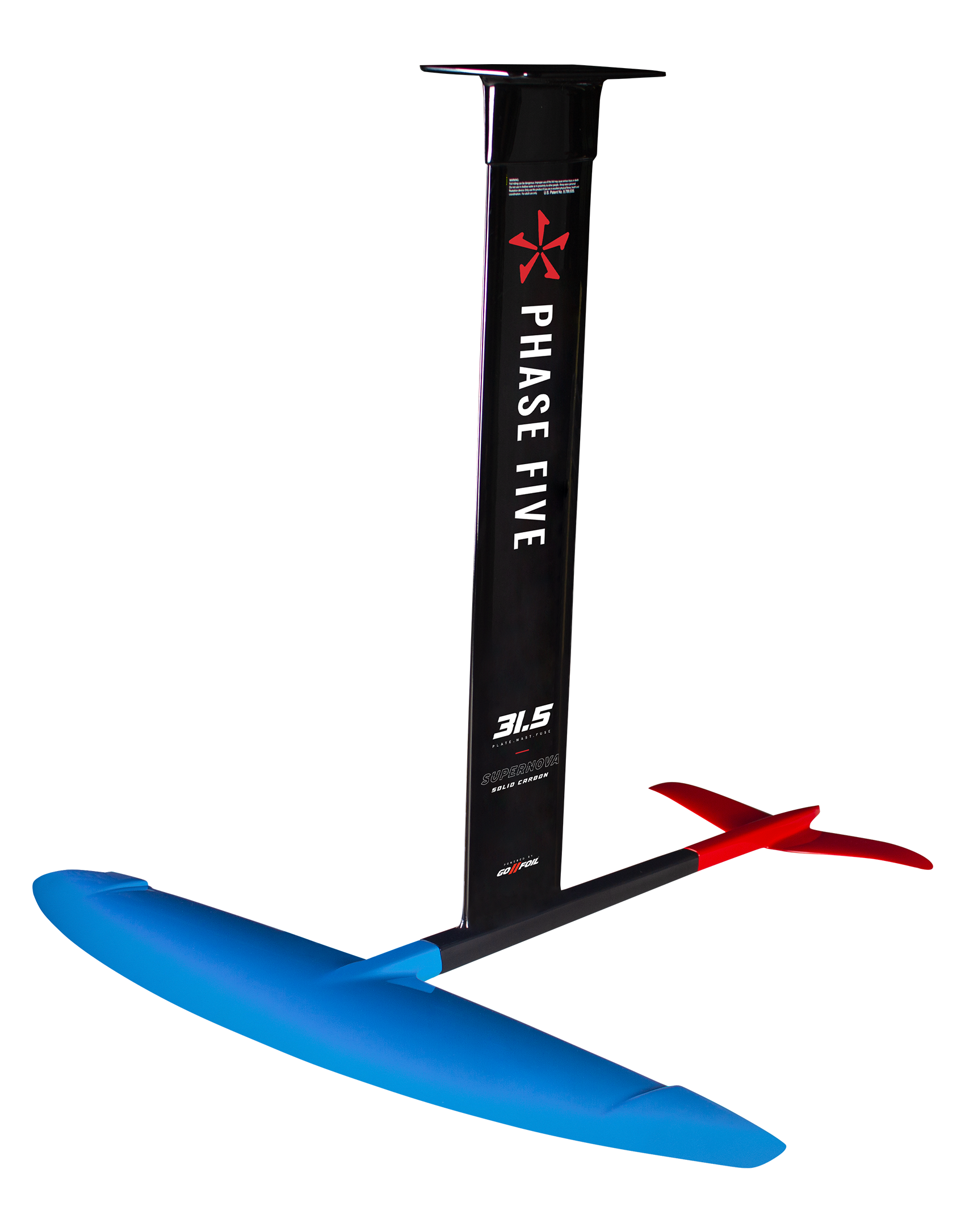 The Phase Five Super Nova foil is the ultimate high performance, lightweight package for experienced foilers. The plate, mast, and fuselage are all one piece. The advantages of one-piece construction are increased stiffness, superior strength, no weak points around connections and less metal parts. Built with 100% epoxy infused carbon fiber for the most light weight high quality process. The front and rear wings are CNC shaped PVC cores with outer skins of 100% carbon. It is designed with simplicity in mind and straightforward to assemble. The front and back foils attach to the fuselage with one screw, simple.