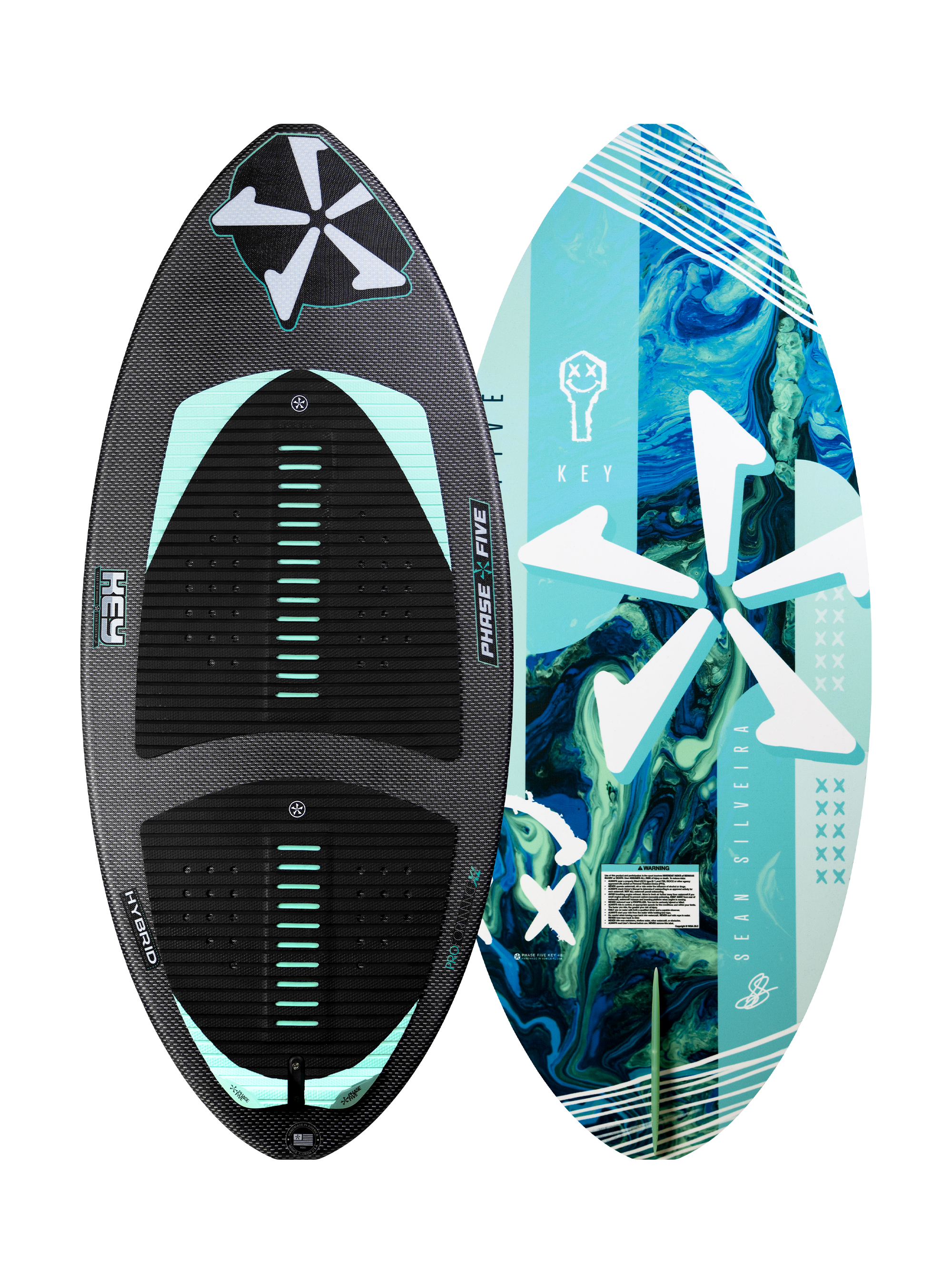 The Phase Five Key Wakesurfer was originally designed by Sean Silveira to cater to his super technical riding. Coming from the Matrix, Sean decided to chop the nose and tail into a squared nub shape which makes it an inch shorter than the Matrix on each offered size. The Phase Five Key Wakesurfer delivers all the elements next generation wakesurfers are after. The Key rotates quickly and carries tons of speed through trick combinations thanks to its thin poppy core and subtle V-Spline bottom contours. The Key is constructed with Hybrid Carbon™ material to take a beating. It is built with a single fin setup and loaded with our 1” Skim Fin. It is the KEY for advanced riding!