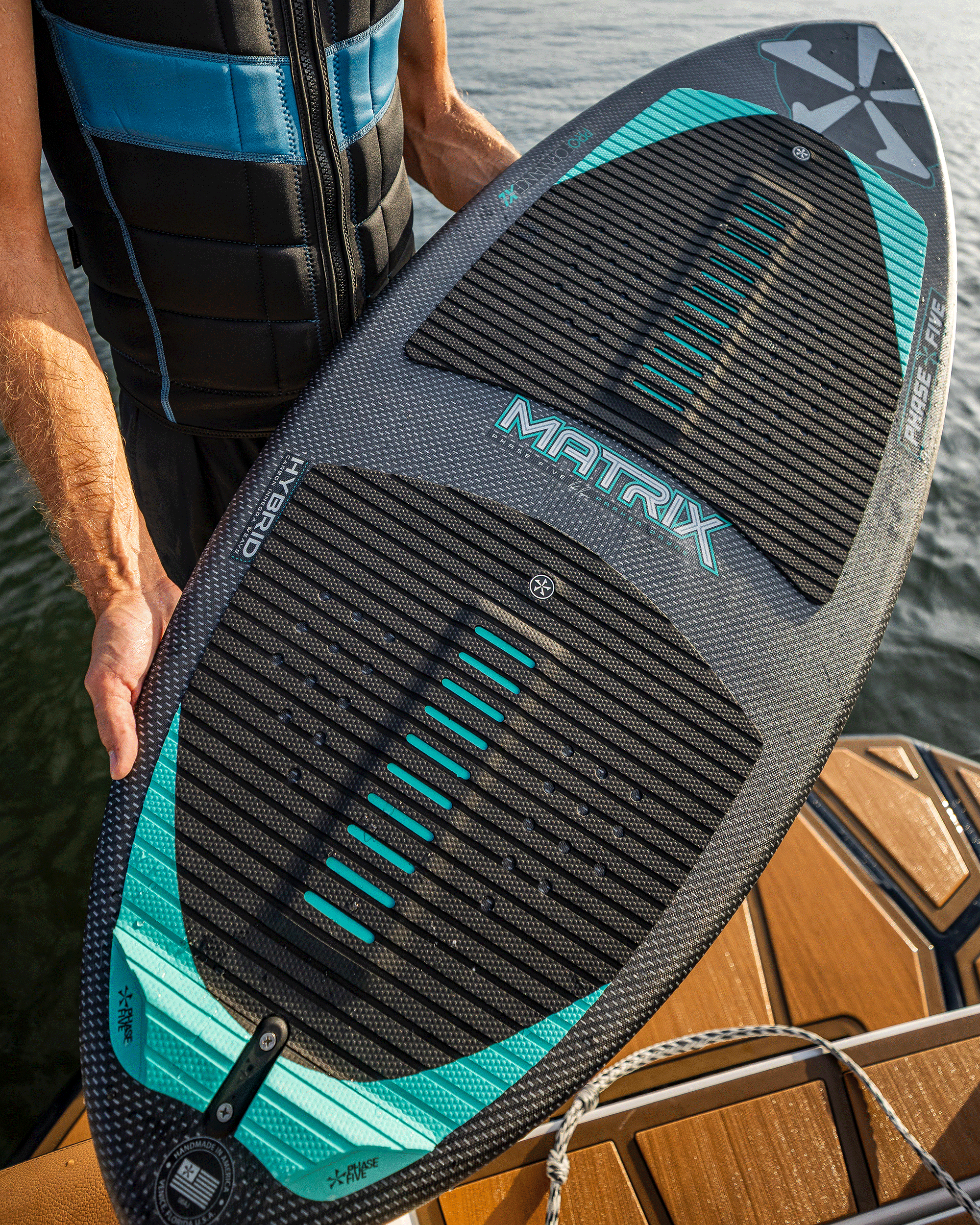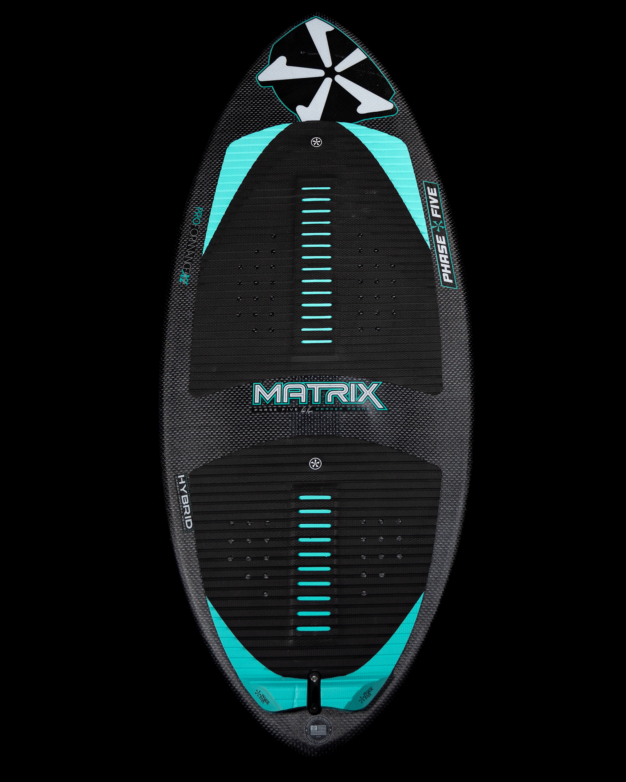The Phase Five Matrix Wakesurfer is an advanced board delivering unrivaled performance. Adopted by many professional riders on the team, the Matrix is sealed and approved to meet the highest expectations. The Matrix is made with a thinner core and boxy rails for ultimate POP and responsiveness. The symmetrical outline rides incredibly well backwards while the subtle V-Spline bottom contours generate trick demanding speed and sensitivity. It includes an added carbon stringer for next level pop, and is constructed with Hybrid Carbon™ material to take a beating.. The Matrix is built with a single fin setup and loaded with our 1” Skim Fin. The Matrix Payne Pro features a unique bottom graphic that Parker Payne dreamed up. No specific design or construction features differentiate the Payne Pro from the Matrix.