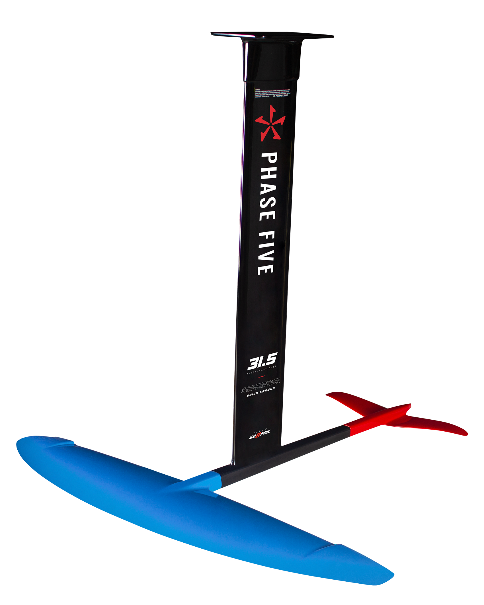 The Phase Five Super Nova foil is the ultimate high performance, lightweight package for experienced foilers. The plate, mast, and fuselage are all one piece. The advantages of one-piece construction are increased stiffness, superior strength, no weak points around connections and less metal parts. Built with 100% epoxy infused carbon fiber for the most light weight high quality process. The front and rear wings are CNC shaped PVC cores with outer skins of 100% carbon. It is designed with simplicity in mind and straightforward to assemble. The front and back foils attach to the fuselage with one screw, simple.