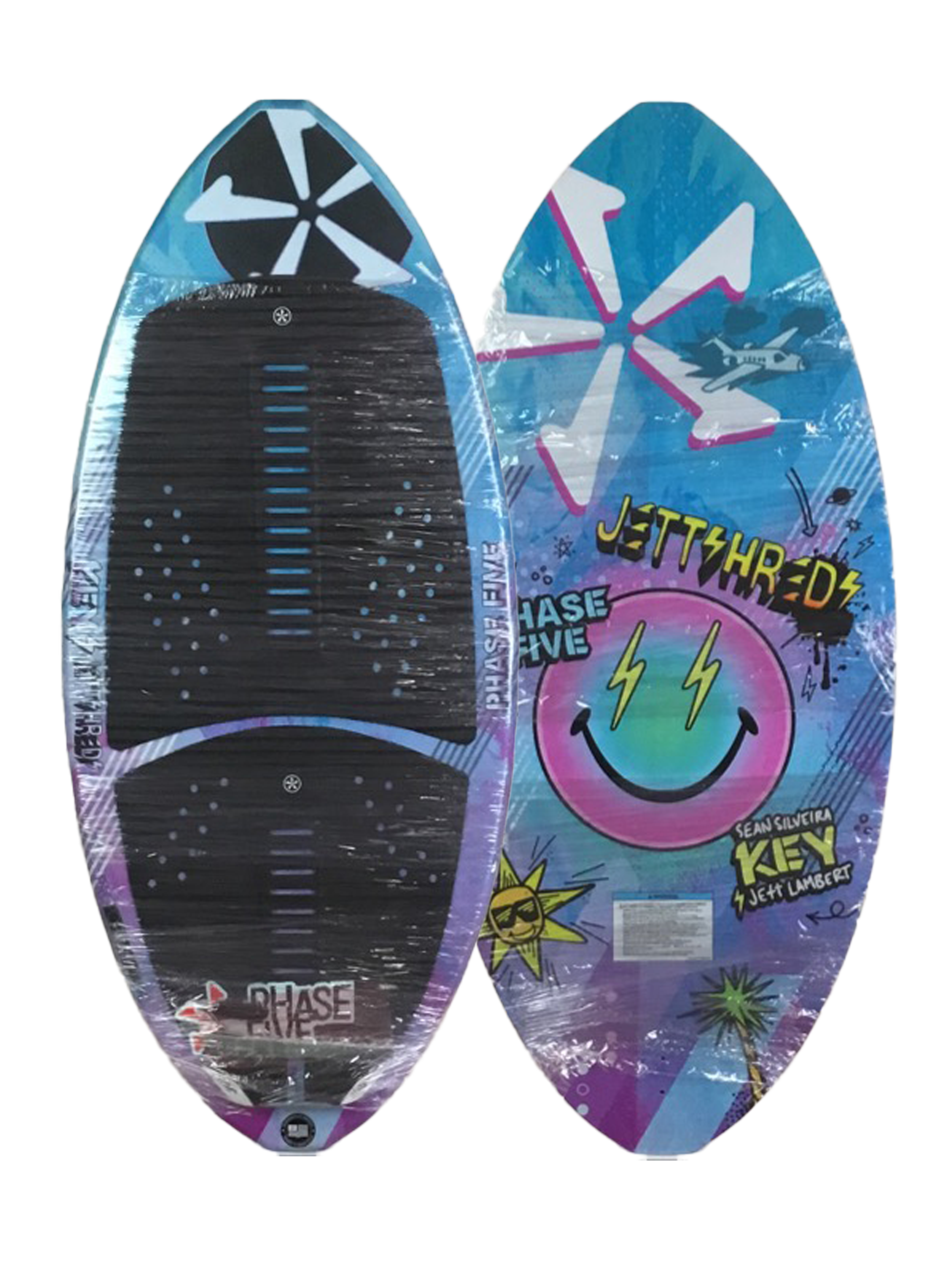 The Phase Five Key Jett Shreds Wakesurfer is a Jett Lambert & Sean Silveira inspired board. You will find this board on the top of many podiums! The nose and tail are a squared off nub shape design. The Jett Shreds Key rotates quickly and carries tons of speed through trick combinations, thanks to the thin poppy core and subtle V-Spline bottom contours. The Key Jett Shreds is constructed with Hybrid Carbon™ material to take a beating. It is built with a single fin setup and loaded with our 1” Skim Fin. It is the KEY for advanced riding!