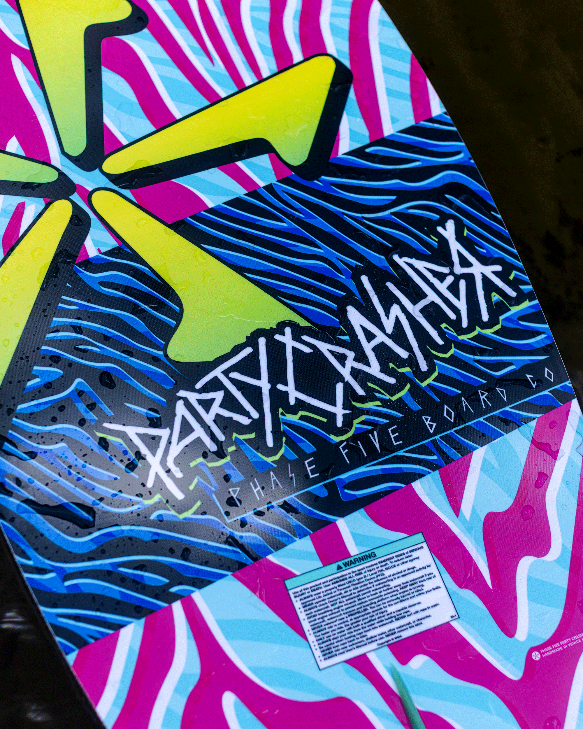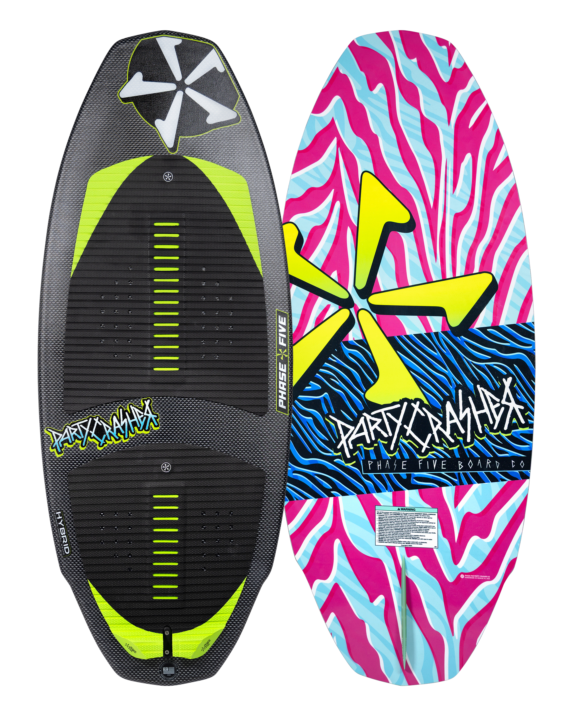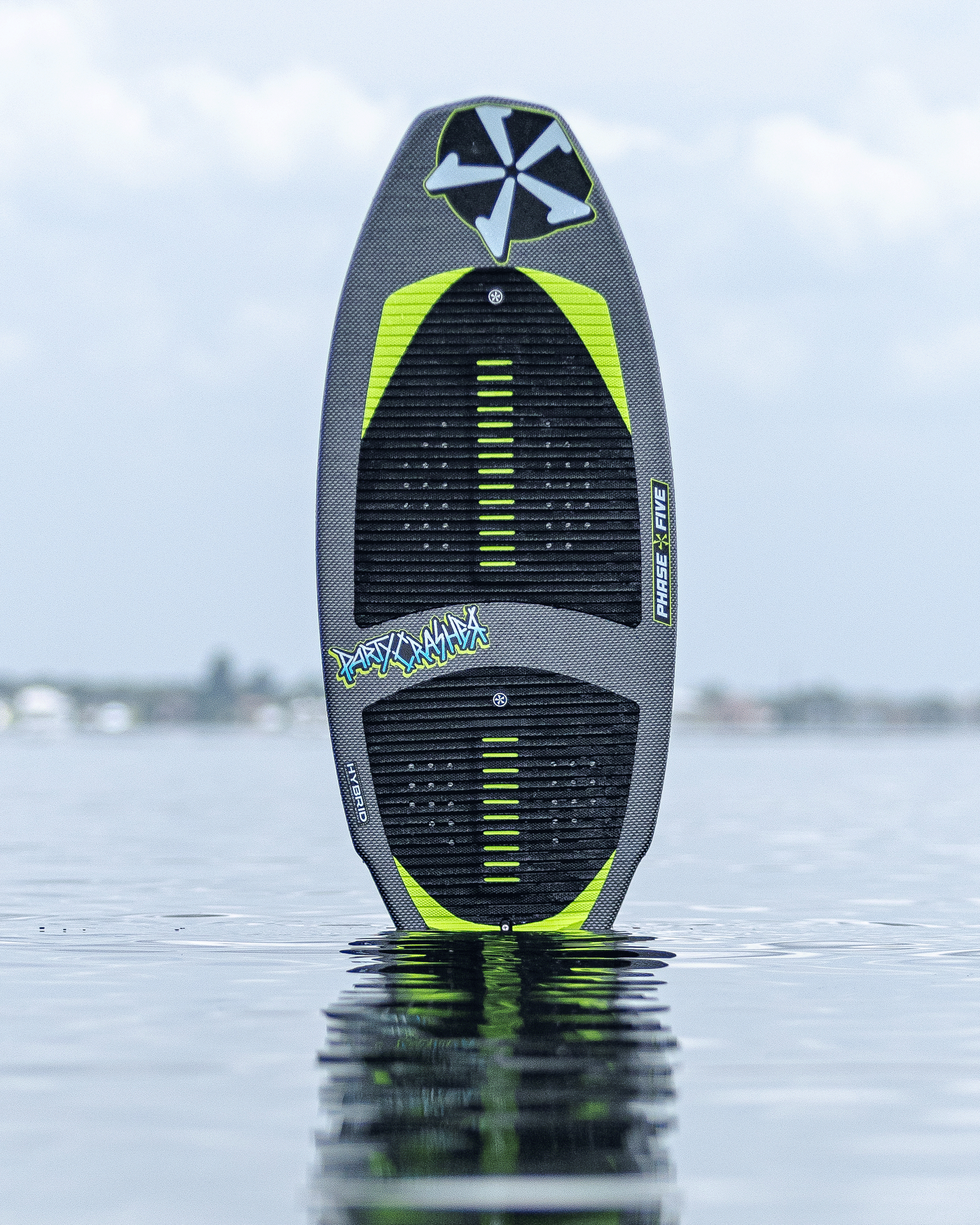 Built for maximum FUN, the P5 Party Crasher is here! It has the workings of longtime P5 board designer, Steve Boomhower, that brought this board to fruition. At first glance, our thoughts were that it could be a replacement for the Hypsta, filling the need of the “all-around” board for anyone in the boat. After riding it, we quickly realized that it was more of a high performance machine. The quickest description that comes to mind is that it feels like a skate deck under your feet. You can ride a much smaller board and still get all the characteristics of your “normal” sized board. Featuring a symmetrical outline that has the same nose and tail shape, this board is fast and responsive. It is made with Hybrid Carbon™ material to take a beating and built with a single fin setup loaded with our 1” Skim Fin.