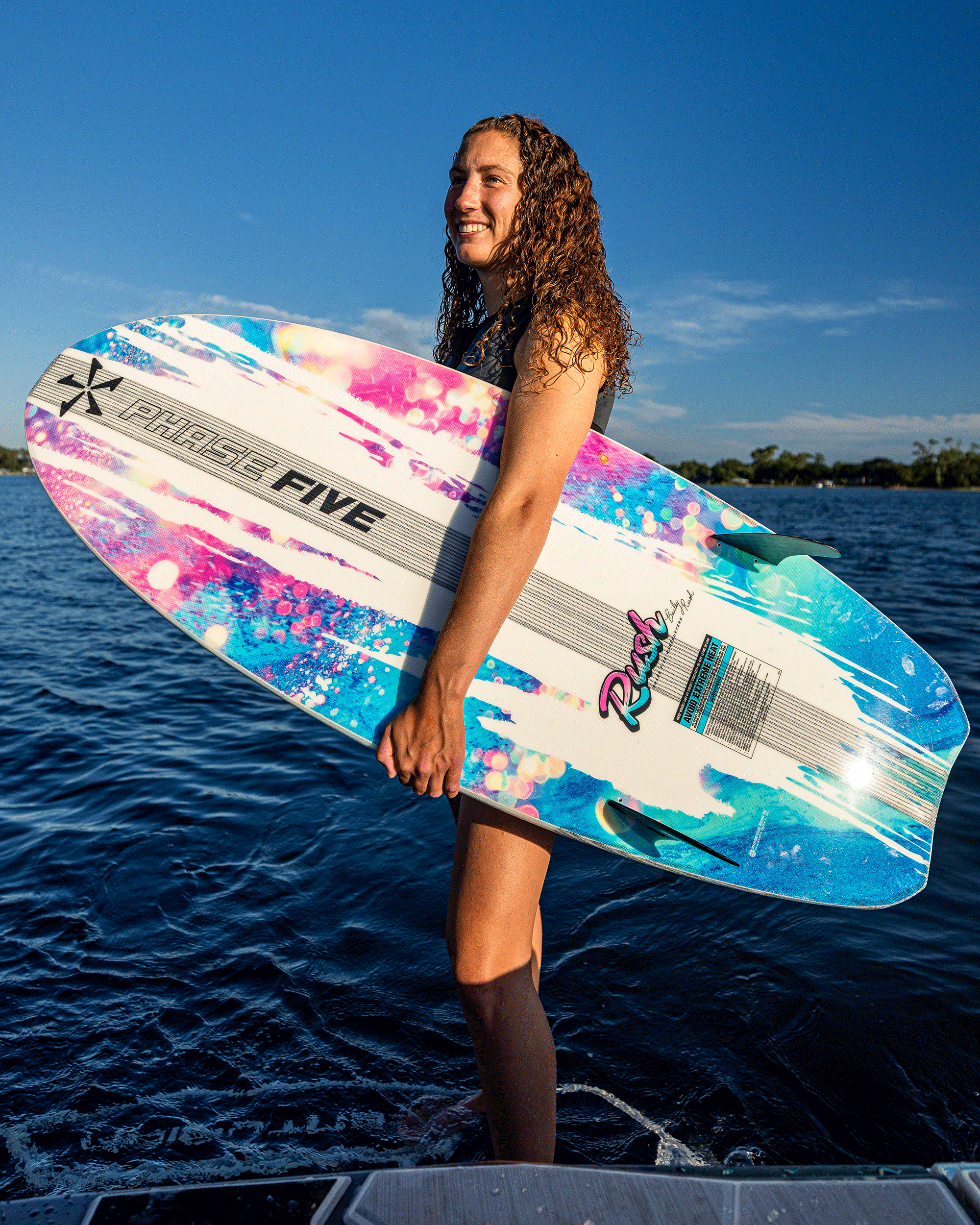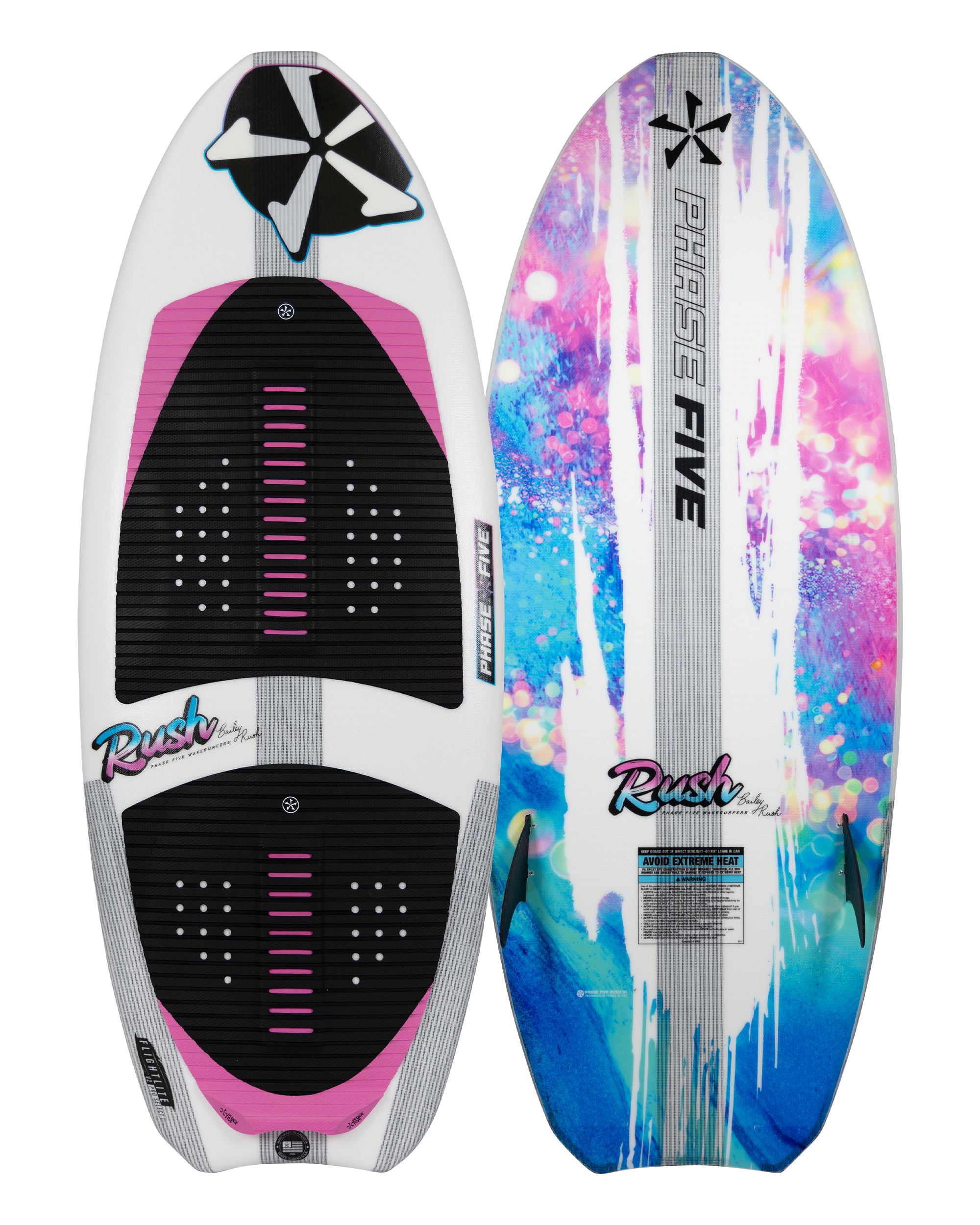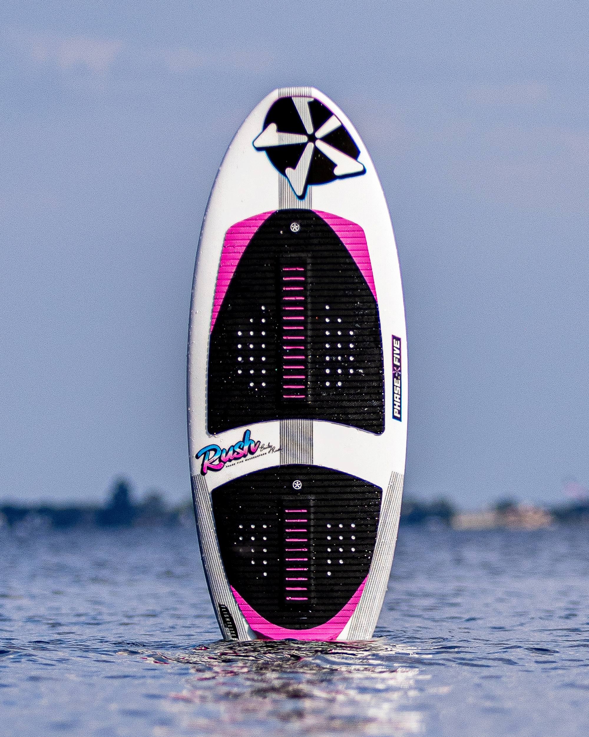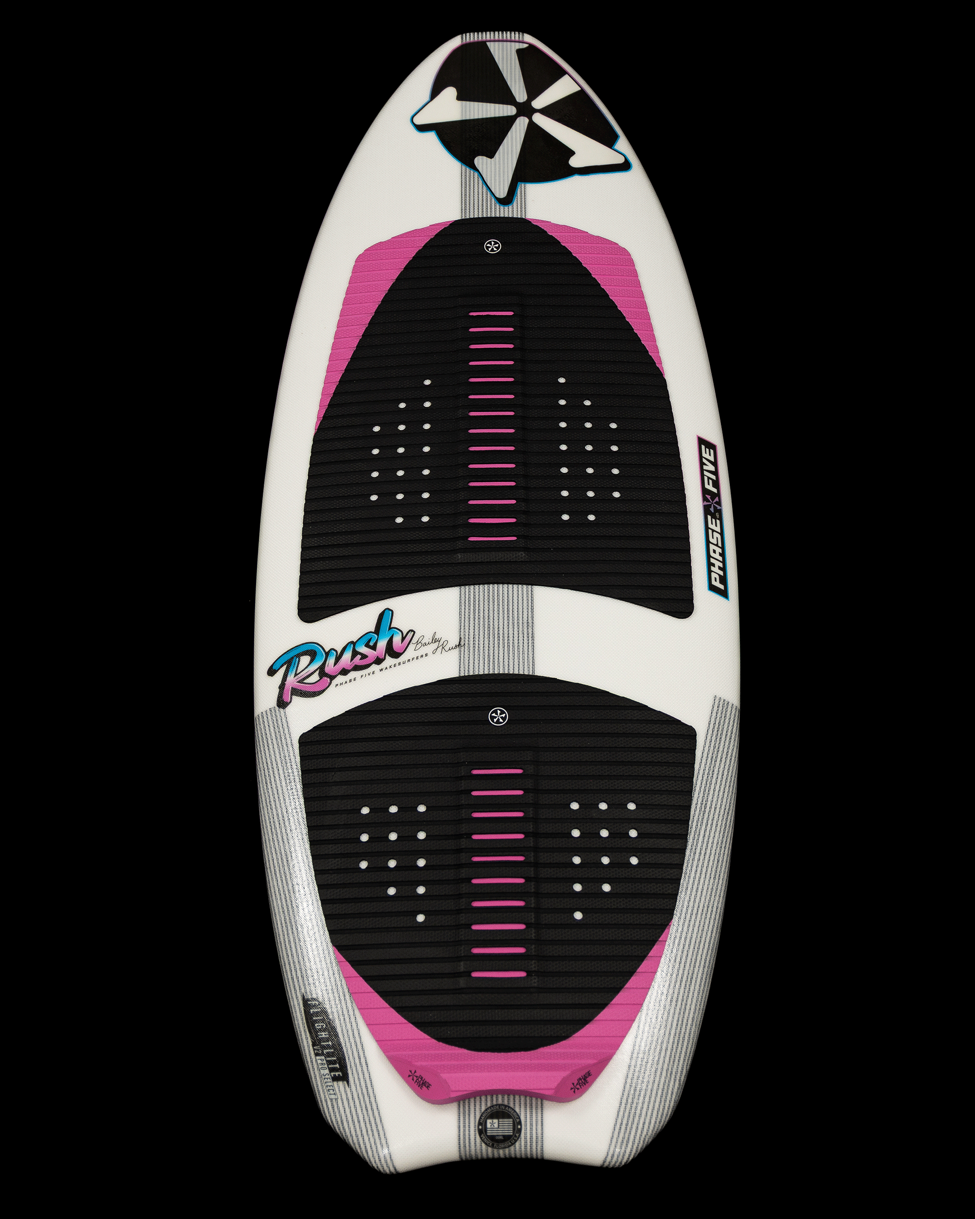 The Phase Five Rush designed by Bailey Rush delivers optimal responsiveness, pop and flow. The refined nose and distinctive tail allow for huge airs and unmatched speed through the water. Carving, revert and 360’s have never been smoother and it’s built to progress with you to any level. From beginner to pro, this board will elevate your riding. The Phase Five Rush Wakesurfer is glassed with our Flightlite V2™ Pro Select layup for ultimate lightweight performance and is equipped with a twin FCS Fusion fin setup. This board isn’t just fast, it’s a Rush!