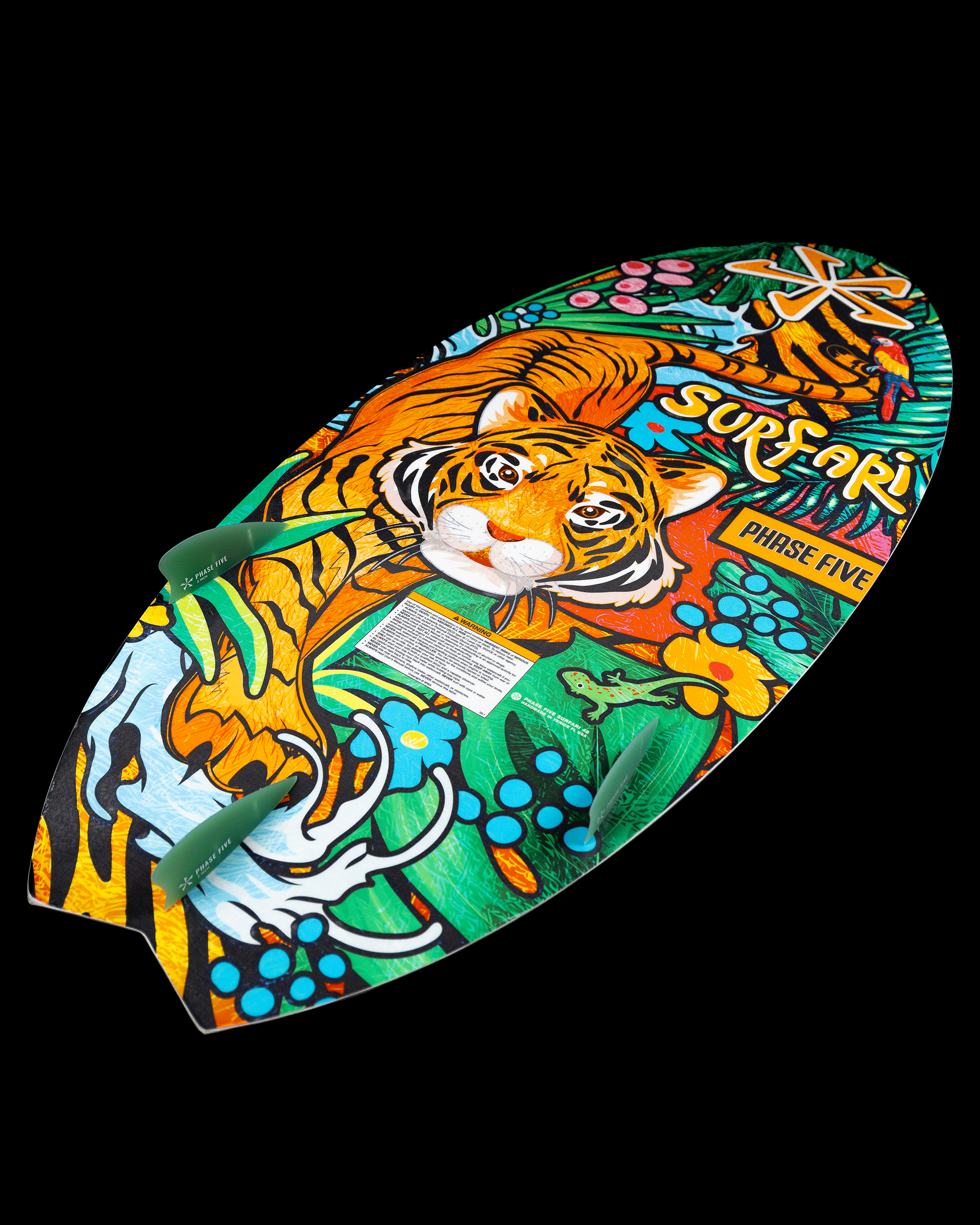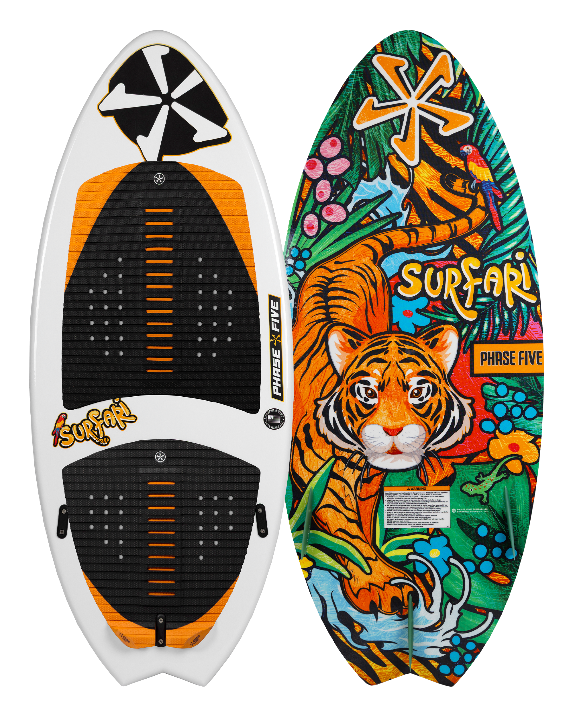 The Phase Five Surfari Wakesurfer breaks the mold with its bold, new-age fish design built for speed and responsiveness. Its sleek, narrow outline and nimble fish tail lead to a rounded pin nose, making it very controllable and perfect for riders of all skill levels. Equipped with a tri-fin setup, this board has a versatile setup that gives you the option to lock the board into the wave or remove the side fins to let you break free and spin with daring precision. Ready to push your limits? The Surfari delivers an exhilarating ride that’s anything but ordinary.
