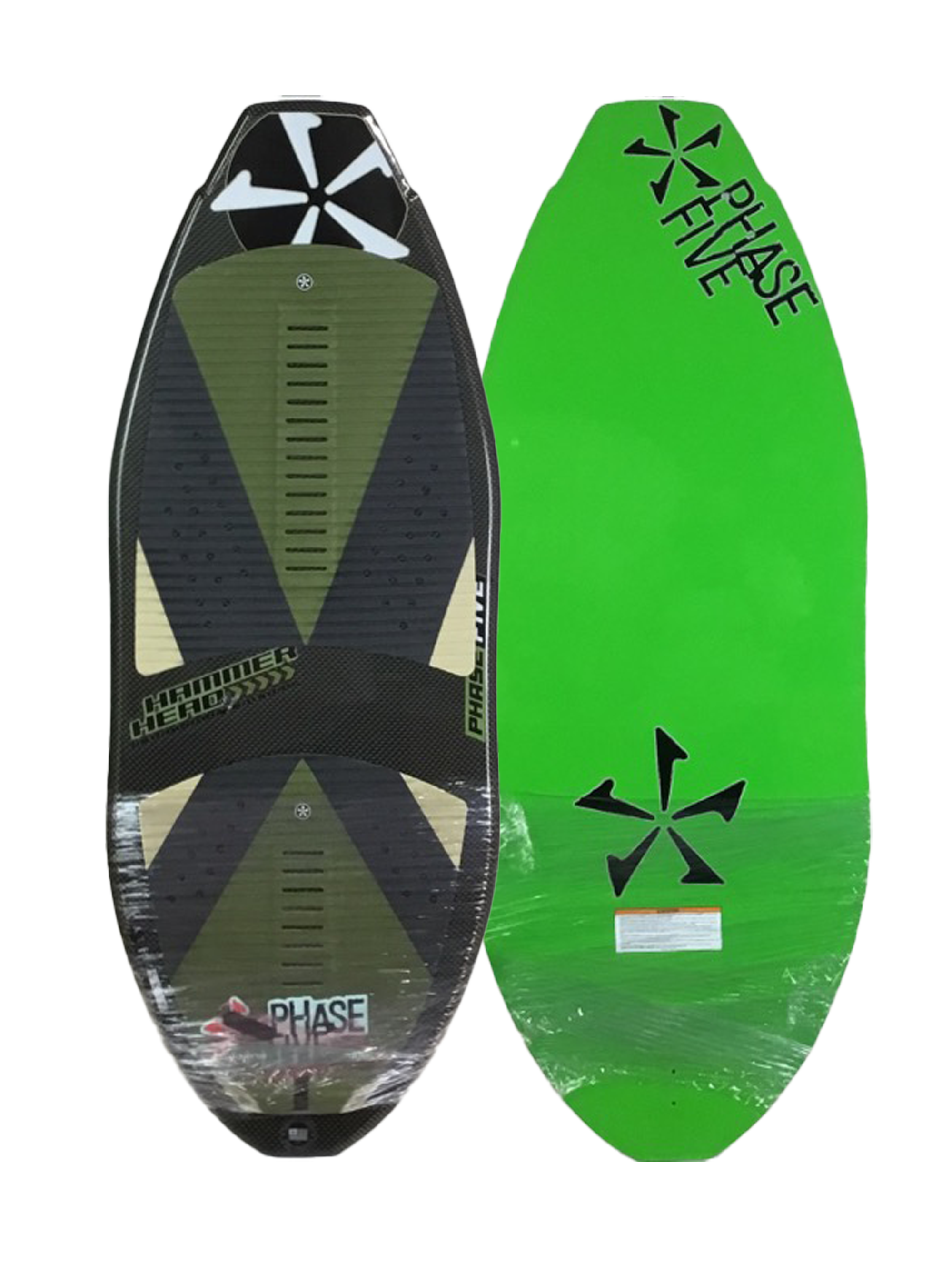 The Phase Five Hammerhead Wakesurfer is the king of revert. With a square nose and tail design, the Hammerhead delivers tons of speed and stability in both directions. Drew Danielo discovered that a traditional pulled in nose would struggle to ride backwards. This is where the Hammerhead triumphs. In addition, the peanut side rail design creates two contact points on the wave instead of one. This keeps the Hammerhead locked in and pointed down the line. The peanut outline adds surface area under each foot for increased maneuverability and speed than its predecessor. It features a full deck pad to take full advantage of riding revert and gives you the freedom to place your feet anywhere on the board! The Phase Five Hammerhead is built with Hybrid Carbon™ material and a single fin setup loaded with our 1” Skim Fin.