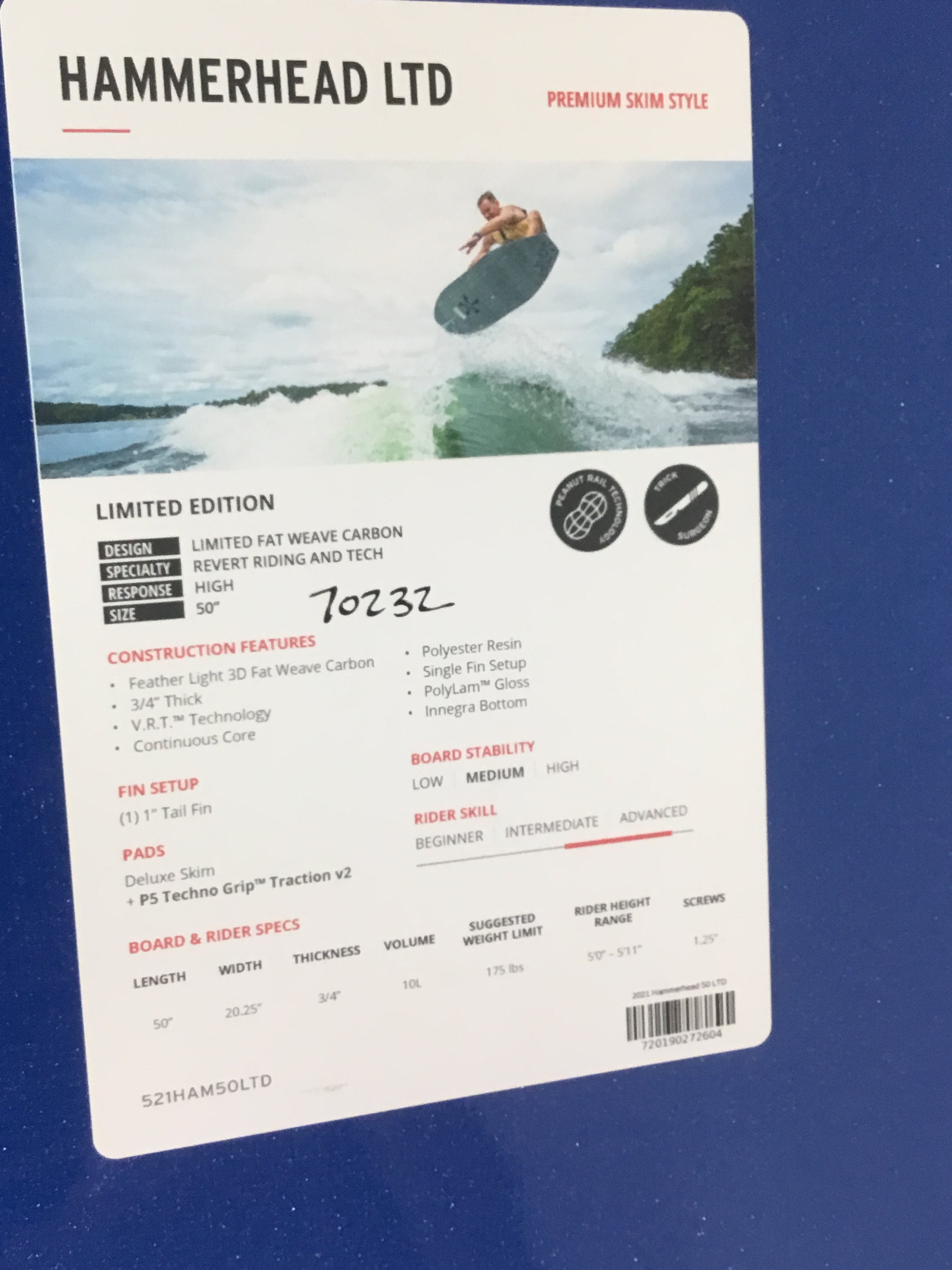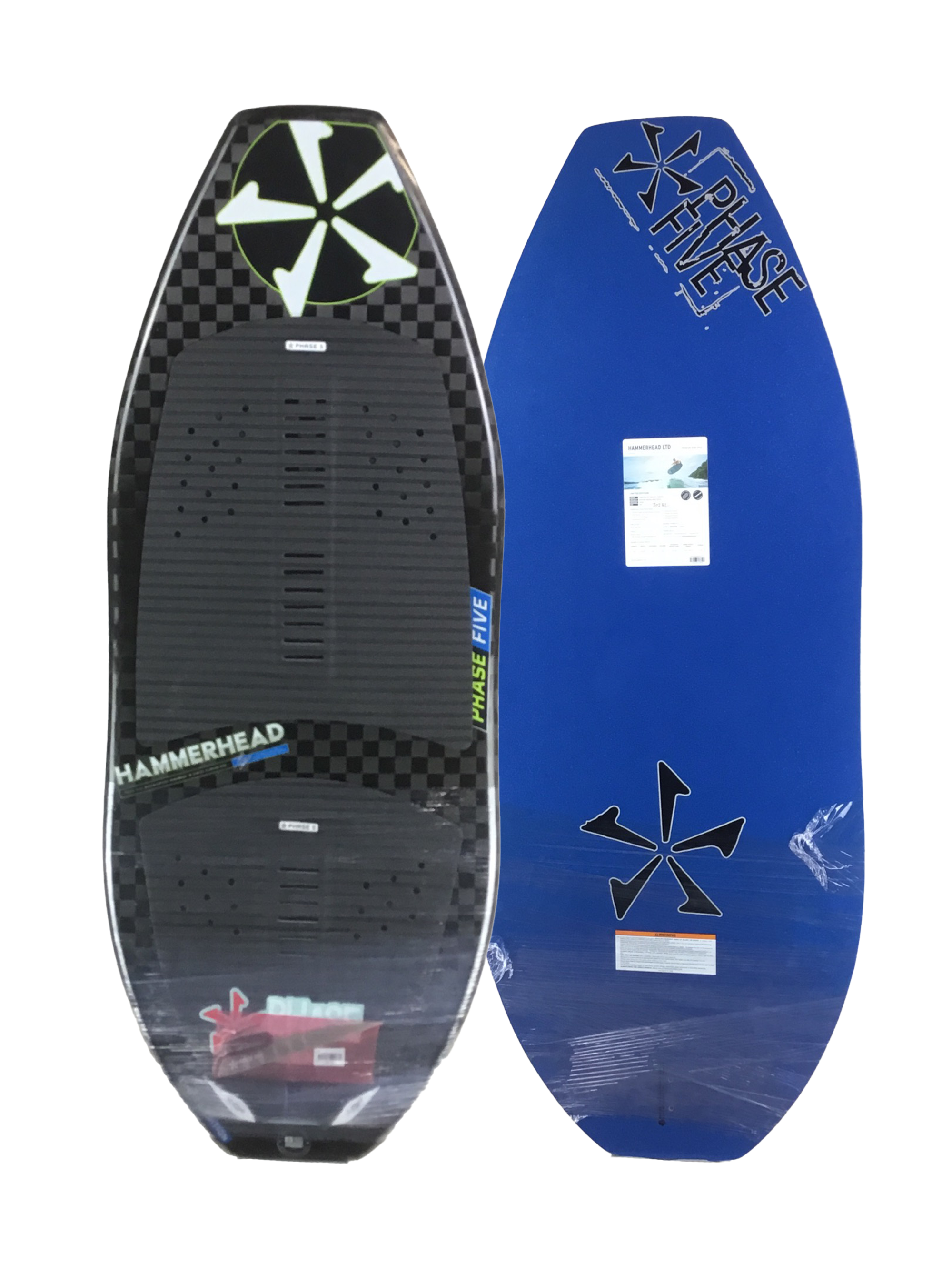 The Phase Five Hammerhead Wakesurfer is the king of revert. With a square nose and tail design, the Hammerhead delivers tons of speed and stability in both directions. Drew Danielo discovered that a traditional pulled in nose would struggle to ride backwards. This is where the Hammerhead triumphs. In addition, the peanut side rail design creates two contact points on the wave instead of one. This keeps the Hammerhead locked in and pointed down the line. The peanut outline adds surface area under each foot for increased maneuverability and speed than its predecessor. It features a full deck pad to take full advantage of riding revert and gives you the freedom to place your feet anywhere on the board! The Phase Five Hammerhead is built with Hybrid Carbon™ material and a single fin setup loaded with our 1” Skim Fin.